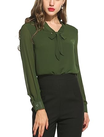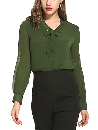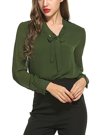 ACEVOG Womens Casual Chiffon Ladies V-Neck Cuffed Sleeve Blouse Tops