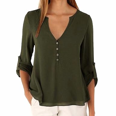 - Features: Short Sleeve, 3/4 Sleeve,Soild color,V neck, Plus size, New Brand,Button Down, Chiffon, work Style