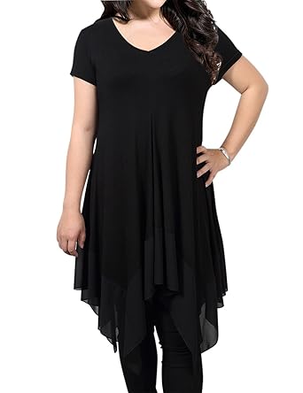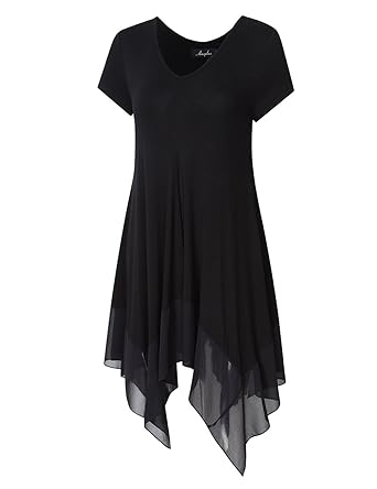 AMZ PLUS Women Irregular Hem Long Sleeve Loose Shirt Dress Top