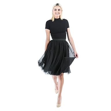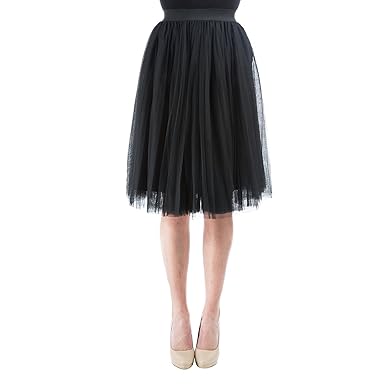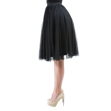 Aerusi Tulle Overlay A Line Knee Length Tutu Skirt | Sheer exquisite Tulle layered skirt, along with elastic waist. Look stunning in this skirt that combines delicate tulle details with intricate stitching. You can wear the skirt with a bodycon top or a casual T-shirt. 3 layer tulle flatters and flows with all your movements. Great skirt for party, prom, ball gown, wedding party, cocktail party and so on.