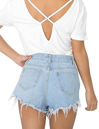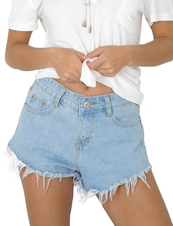 Allegrace Women Summer Casual Raw Edge Hem Denim Shorts Fashion Junior Jean Shorts