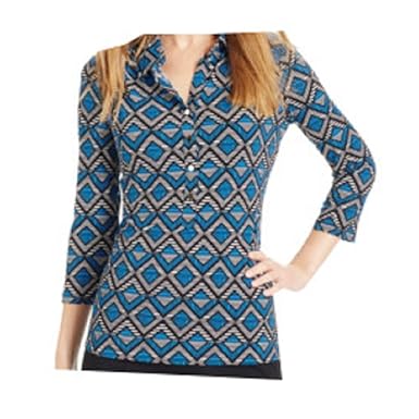 Alfani Petite Three-Quarter Sleeve Printed Polo Shirt, Dash Daim Blue, PL