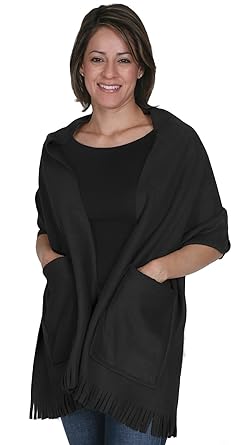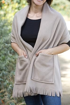 The Fleece Shawl Wrap Scarf with Pockets is an interesting and practical scarf. Its wide width is ideal for keeping yourself warmer in the cold