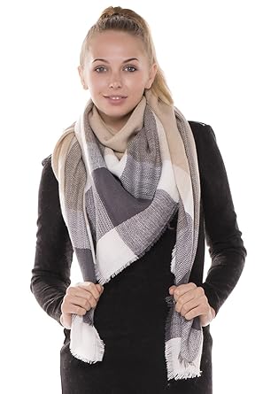 - Stylish: Square oversized blanket shawl scarf / Plaid tartan checked design / Cozy warm fabric / Raw fringes tassels edging