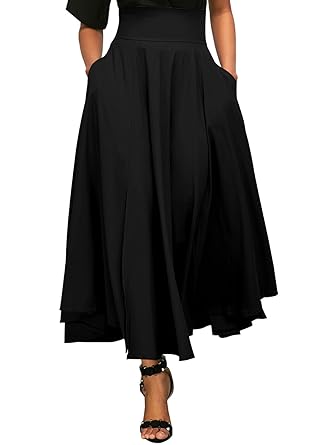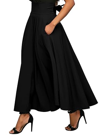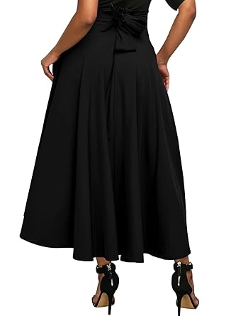 Annflat Women's High Waist Pleated A Line Long Skirt Front Slit Belted Maxi Skirt S-XXL