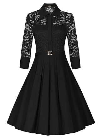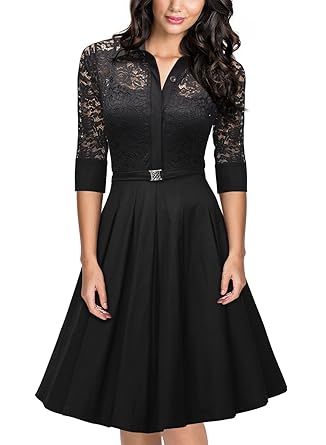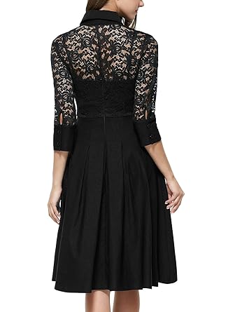 This vintage 3/4 sleeve lace swing dress was designed for bridesmaid,wedding,business and cocktail party occasions. The dress has a good weight and the skirt portion is a thick material.It is stretchy material.The lace detail is flawless.You will received a lot of compliments when wearing this dress.